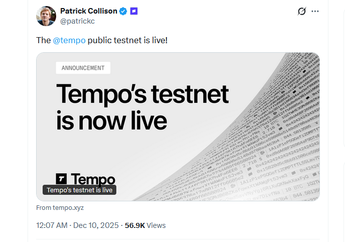 Команда ориентированного на стейблкоины блокчейна Tempo развернула публичную тестовую сеть. Она включает в себя инструменты для онбординга разработчиков и тестирования «стабильных монет»