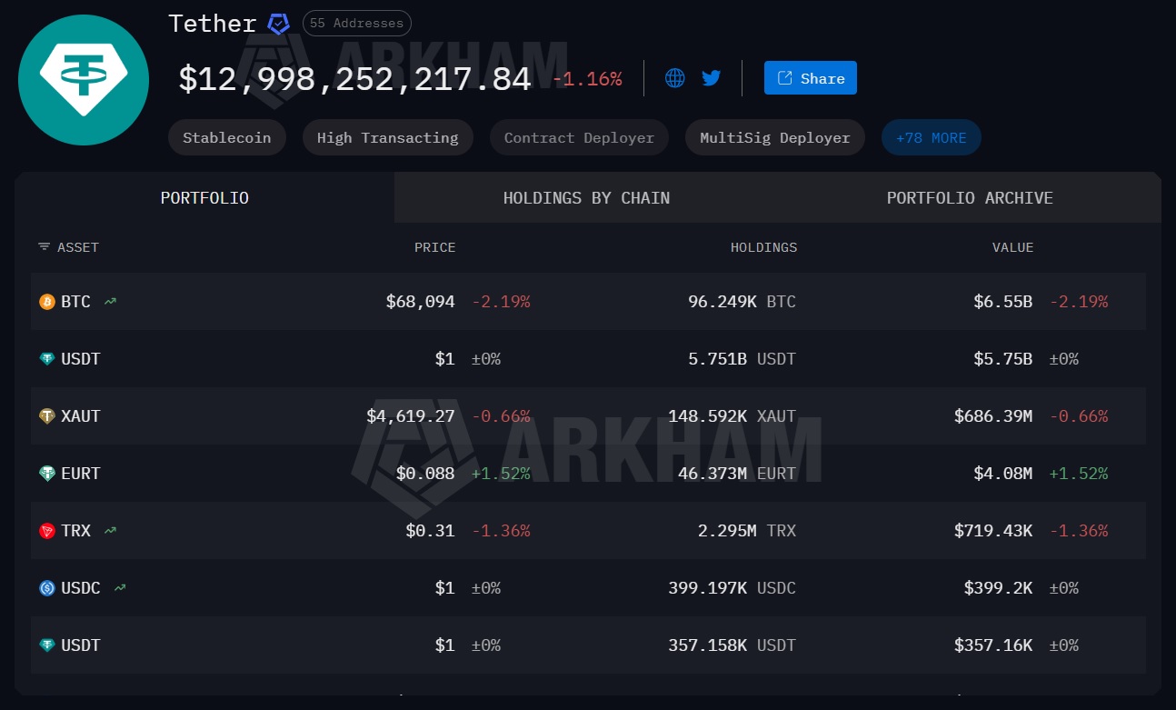 По данным Arkham, совокупный объем активов на кошельках компании составляет примерно $13 млрд.
