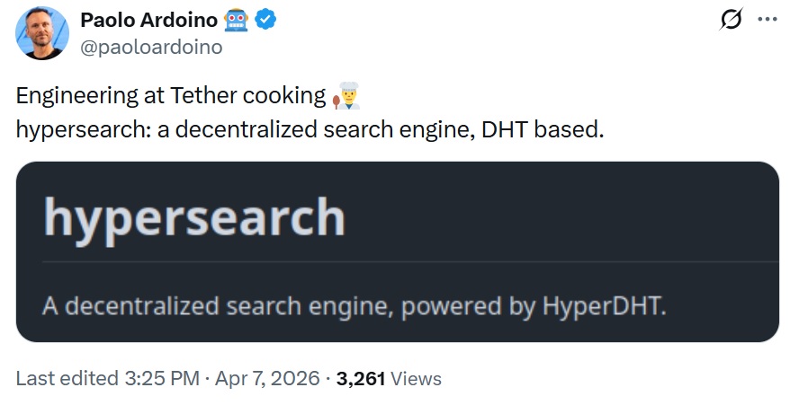 Эмитент крупнейшего стейблкоина $USDT расширяет сферу деятельности за пределы финансового сектора. По словам главы компании Паоло Ардоино, инженеры Tether ведут активную работу над децентрализованным поисковиком.