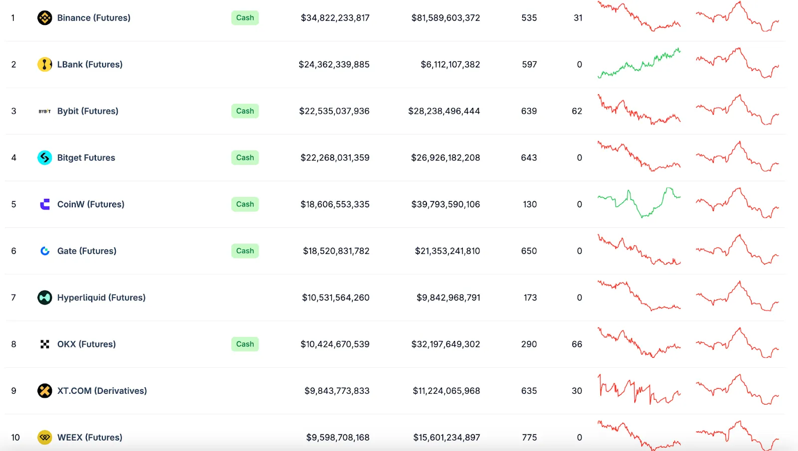 Еще в апреле DEX занимала 12 место среди бирж для торговли деривативами. По данным CoinGecko, на момент написания Hyperliquid удерживает седьмую позицию. Открытый интерес на платформе составляет $10,6 млрд.