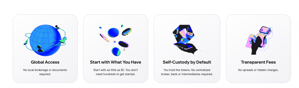 Предложение RWA, поддерживаемое Trust Wallet, допускает минимальную сумму инвестиций в размере 1 доллара США и не требует участия местного брокера или предоставления документов. Источник: Trust Wallet.