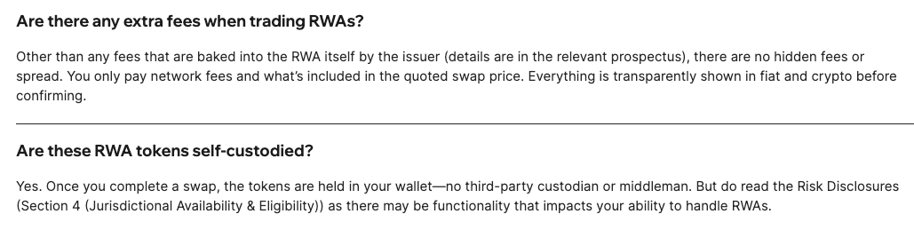 Отрывок из раздела часто задаваемых вопросов Trust Wallet о RWA. Источник: Trust Wallet