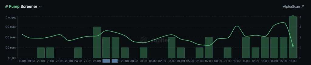 15 сентября объем торгов на платформе для выпуска мем-коинов Pump.fun достиг $1 млрд впервые с июля. Об этом свидетельствуют данные DEX Jupiter.