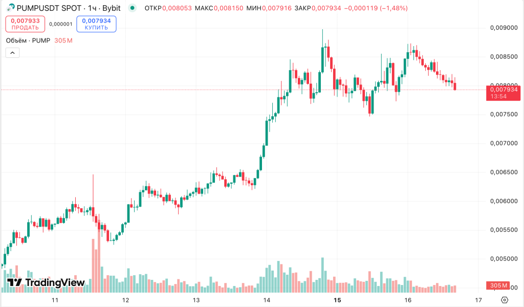 С момента запуска программы цена PUMP выросла почти на 54%. На момент написания актив торгуется по $0,007 при капитализации в $2,8 млрд.