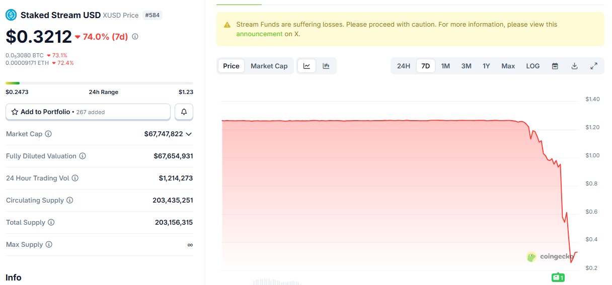 Еще до официального заявления Stream Finance пользователи заметили, что XUSD начал терять привязку к доллару. Операции с депозитами и выводом средств были остановлены без объяснений со стороны команды.