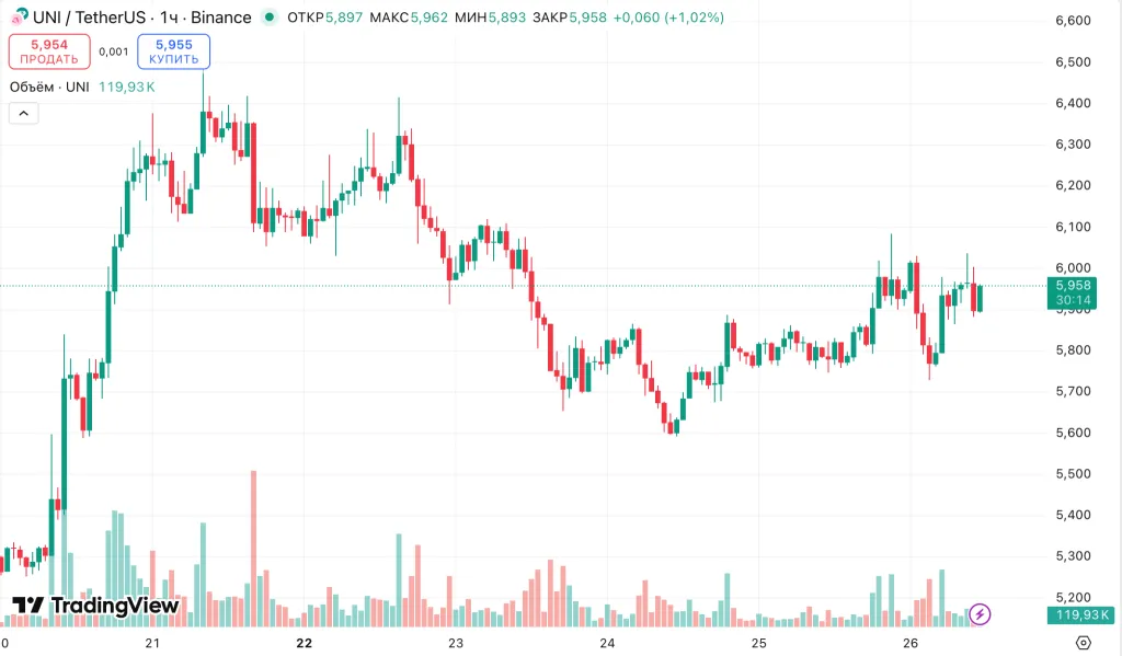 За последние сутки цена UNI выросла на 2,9%. На момент написания актив торгуется по $5,9.