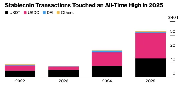 Общий объем транзакций со «стабильными монетами» в 2025 году вырос на 72% — до $33 трлн.