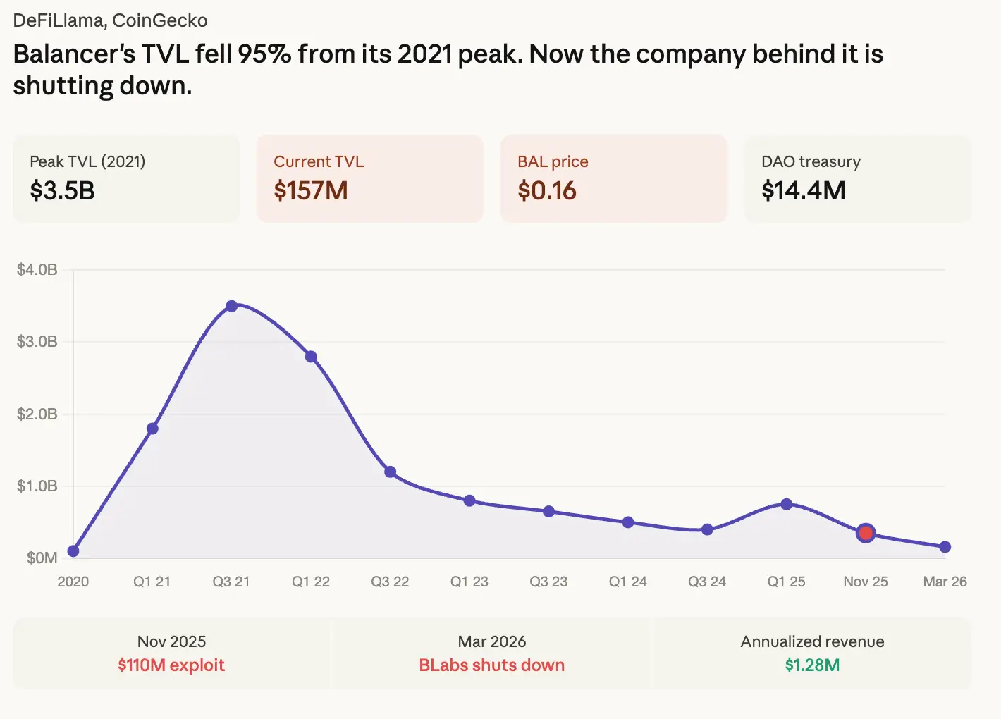 Компания, создавшая мощный DeFi‑протокол Balancer, прекращает работу.