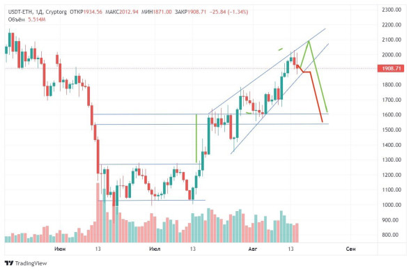 Цена Ethereum после достижения важного психологического уровня в $2 тыс. испытывает нестабильность, говорит CEO Cryptorg Андрей Подолян. Он отметил, что на графике цены второй по капитализации криптовалюты формируется «большой медвежий клин», аналогичный клину на графике биткоина.