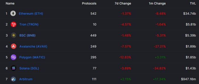 Топ-7 сетей по сумме криптовалюты, заблокированной в смарт-контрактах DeFi