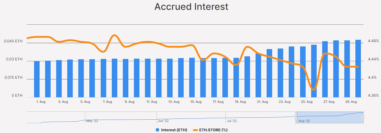 Минимальная сумма инвестиций составляет 0,1 ETH. Вознаграждение начисляется в криптовалюте по референсной ставке ETH.STORE, основанной на Ethereum Proof-of-Stake.