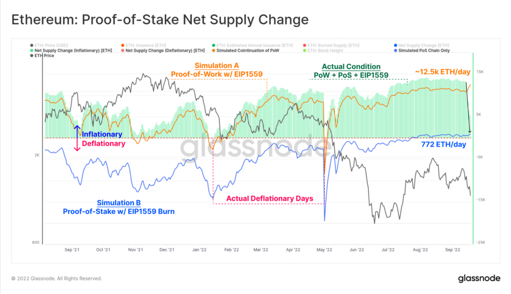 Ранее аналитики Glassnode пришли к выводу, что после активации обновления The Merge вторая по капитализации криптовалюта с большой вероятностью станет дефляционной.