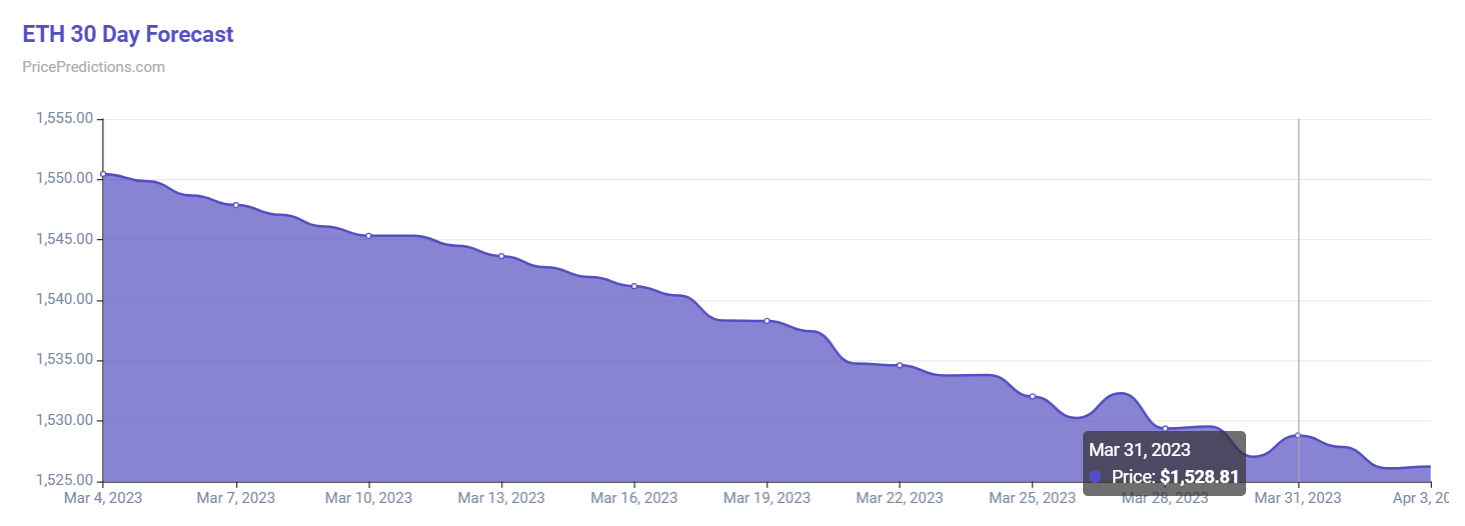 Прогноз цены Ethereum на 30 дней. Источник: PricePredictions