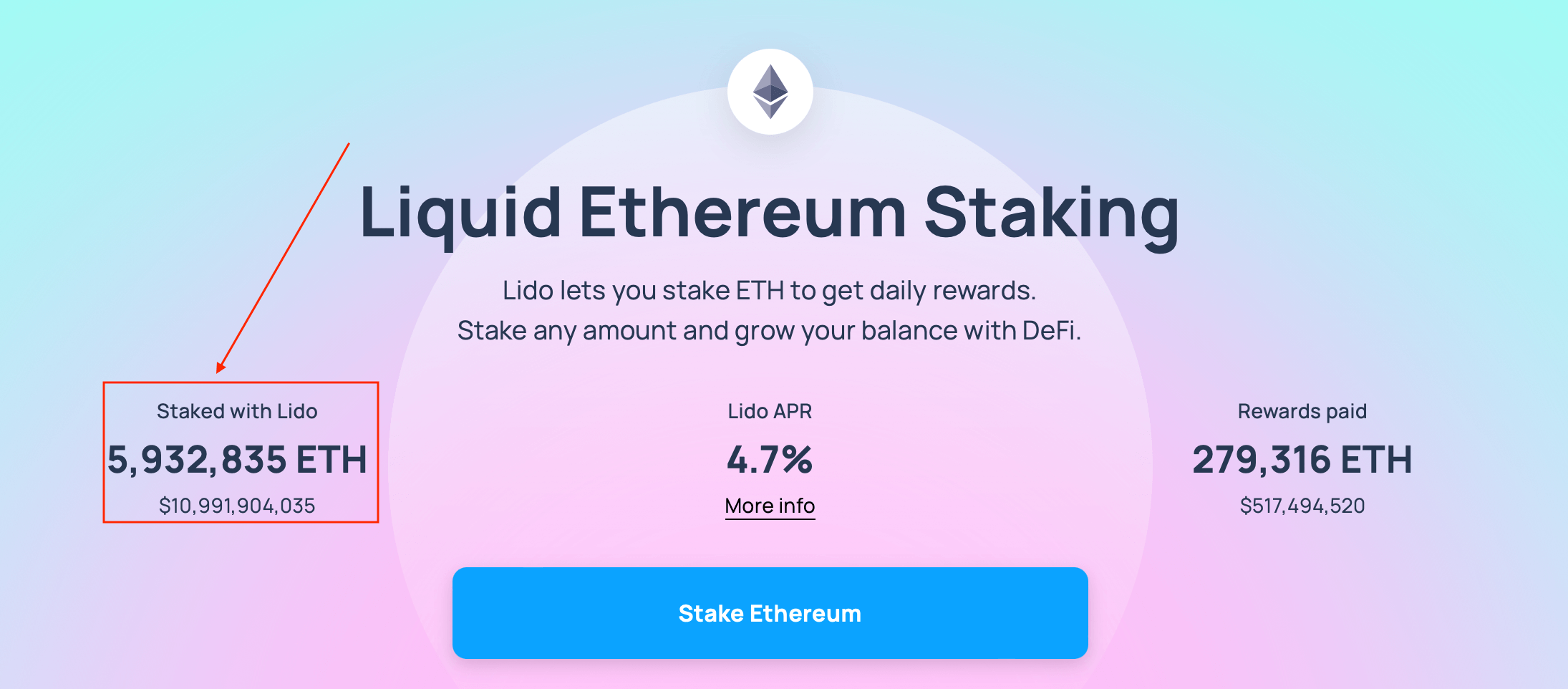 Ну а почти 33 процента от этой суммы приходится на платформу Lido, которая является крупнейшим стейкинг-пулом Эфириума. Сделать такой вывод позволяют данные на странице платформы.