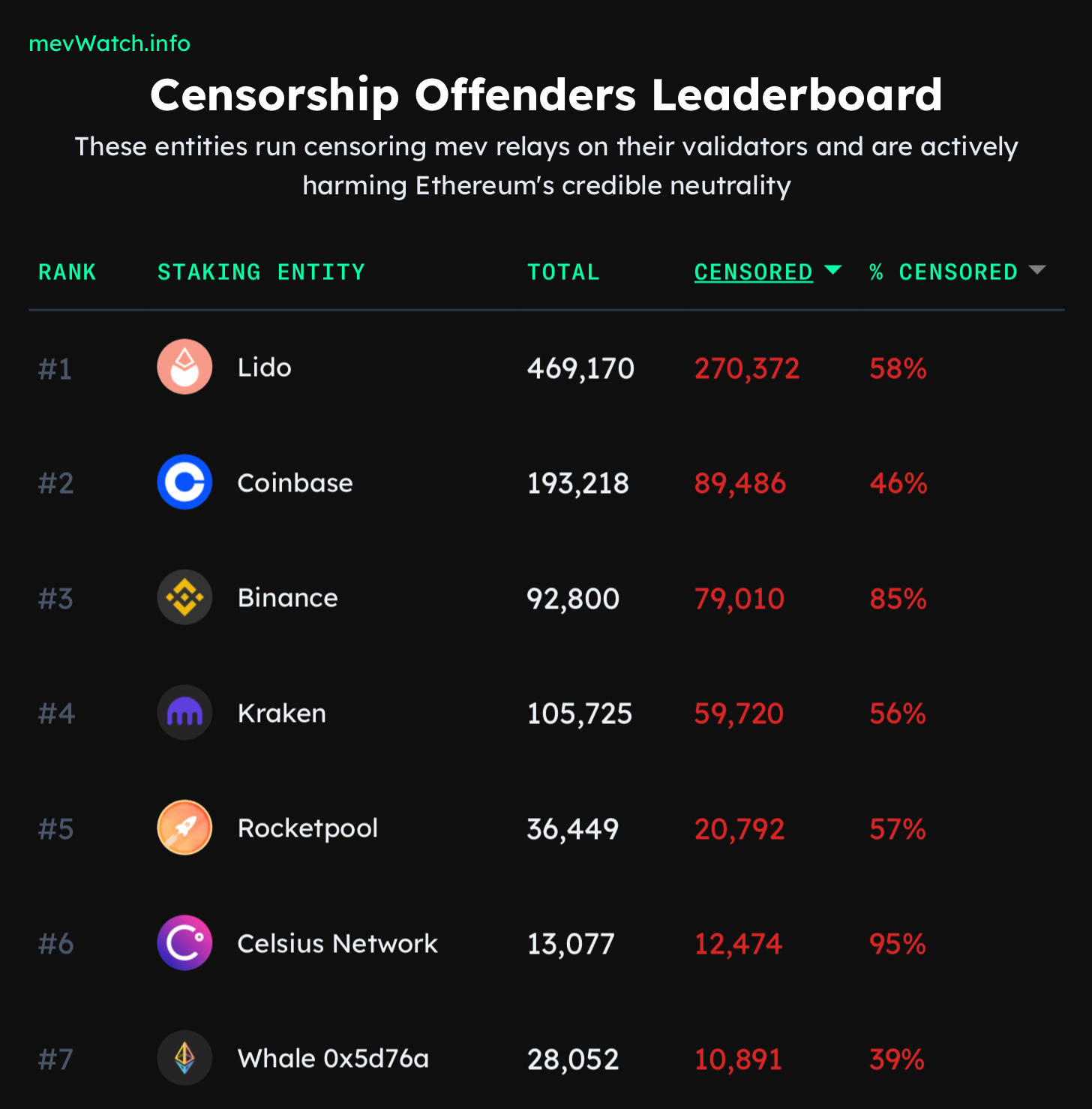 Участники сети Эфириума, которые участвуют в цензуре определённых транзакций
