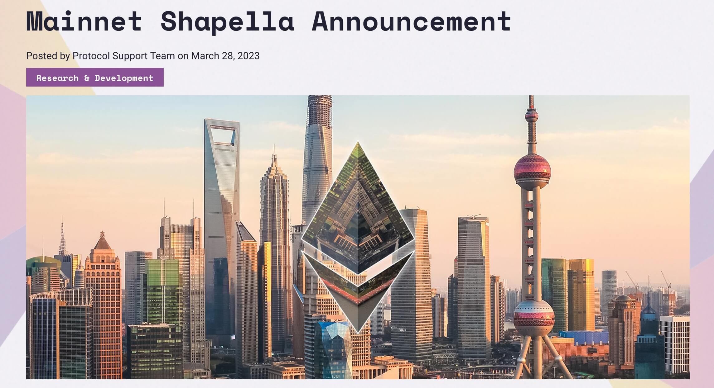 Анонс обновления Shapella/Shanghai разработчиками Эфириума