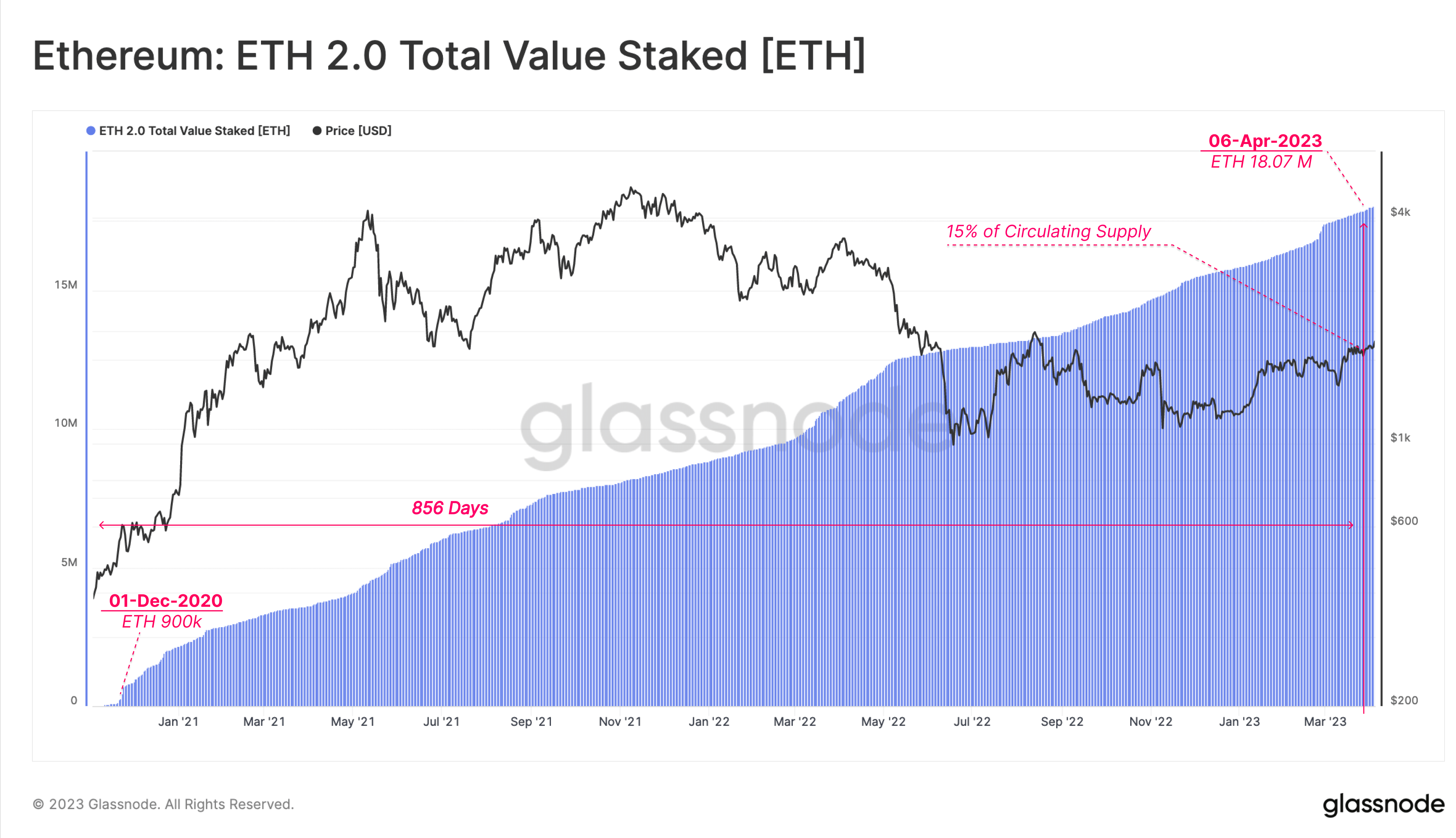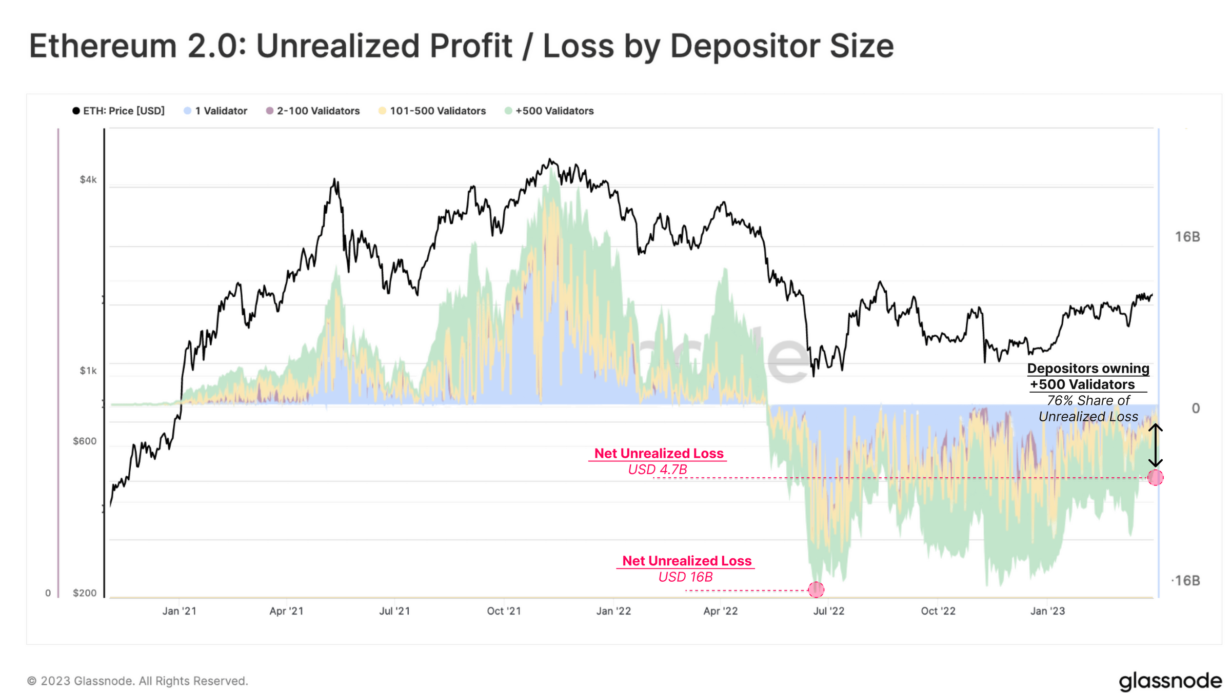 На самом деле у вывода ETH из смарт-контракта есть несколько условий. Прежде всего, за сутки можно разблокировать только 43 200 ETH из актуальных 18.01 миллиона ETH в стейкинге, о чём в своём свежем отчёте заявили аналитики платформы Glassnode. Также важны рыночные условия, то есть стоимость монет, при которой они изначально были направлены в смарт-контракт. Рассмотрим подробнее потенциальное развитие событий после обновления.