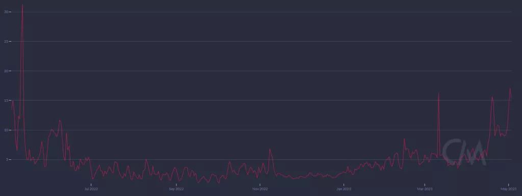В этом случае главная причина кроется в ажиотаже вокруг Ordinals и связанного с ним экспериментального стандарта токенов BRC-20, представленного в начале марта.