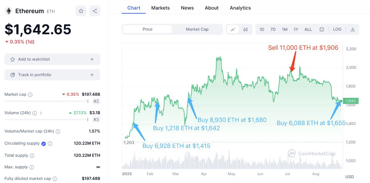 Фонд уже не первый раз совершает операции с Ethereum. С января по март работники организации купили 17 076 монет стоимостью $ 26,8 млн по средней цене $ 1569. 5 июля они продали 11 000 монет по курсу $ 1906 и заработали прибыль около $ 3,7 млн.