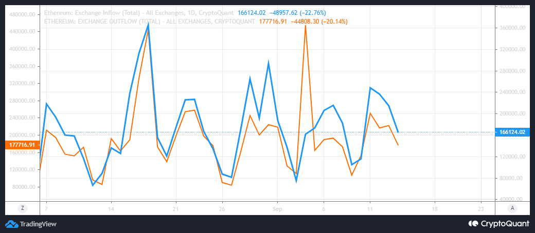 Данные о биржевых потоках Ethereum показали доминирование притока над оттоком. Это может указывать на то, что текущий поток ликвидности ETH не соответствует сильному бычьему движению.