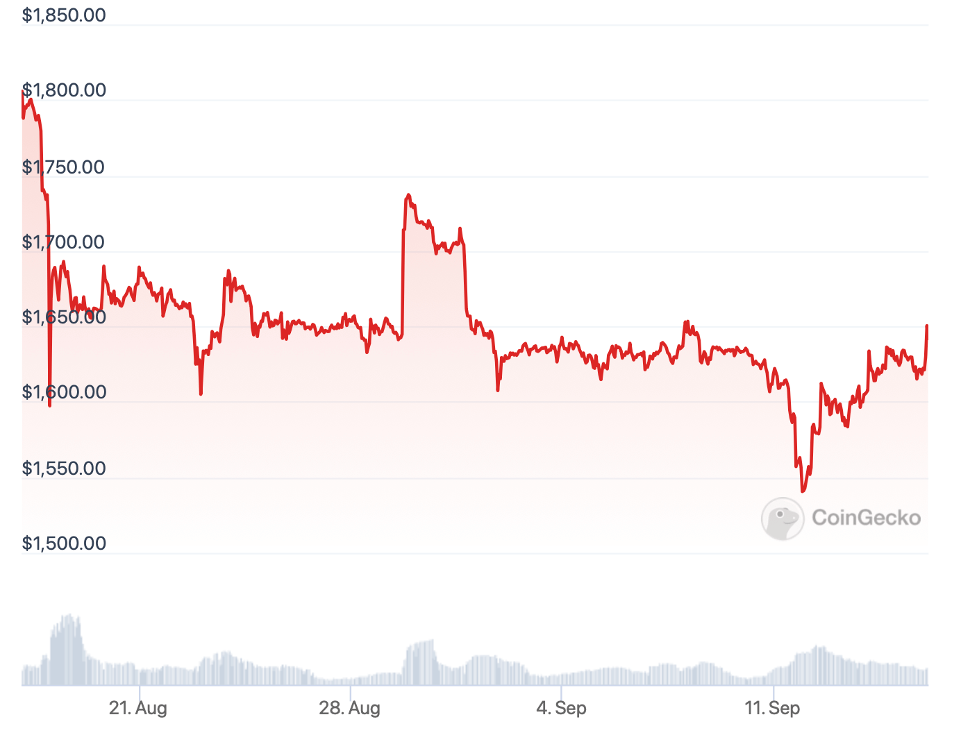 Изменения курса ETH за последние 30 дней