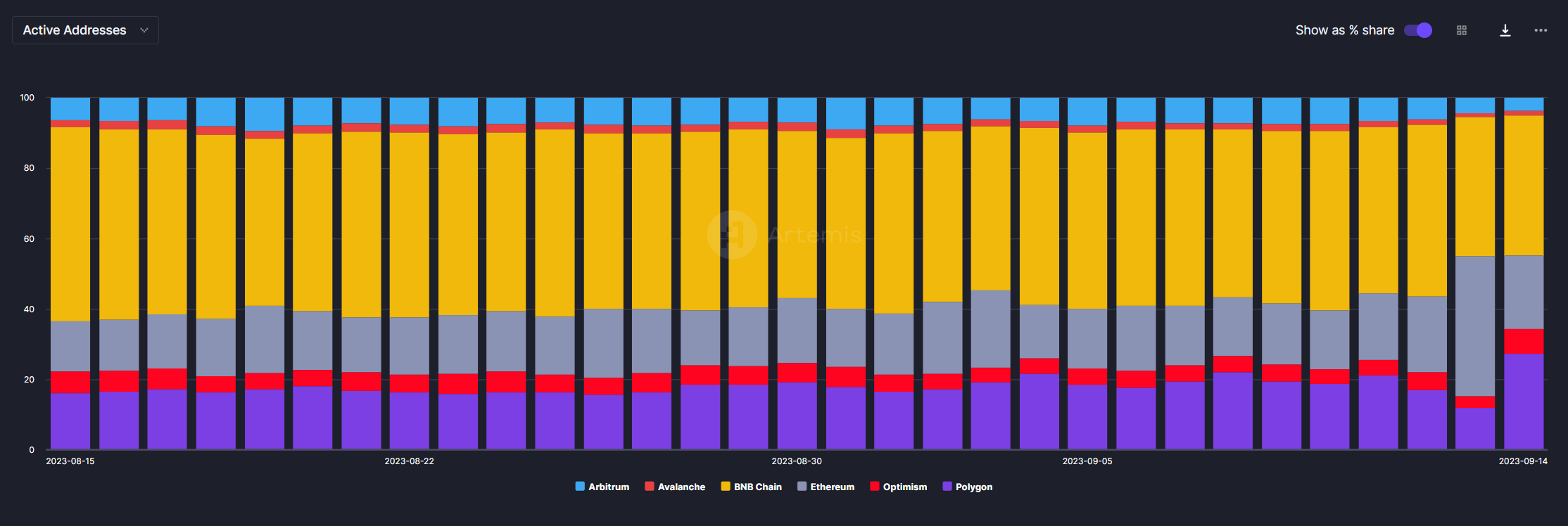 Этого результата хватило, чтобы обойти соответствующий показатель BNB Chain. Причём Эфириум не опережал BNB по числу активных пользователей уже более двух лет.