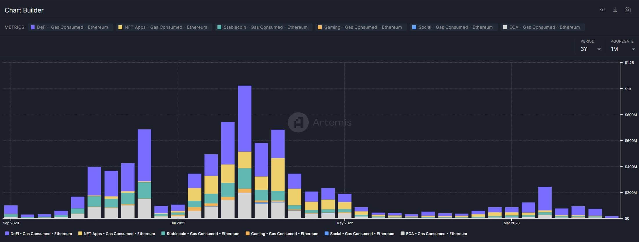 Также эксперты отмечают заметное изменение структуры потребления газа в сети Эфириума за последние два года. Если во время буллрана в 2021 году газ преимущественно шёл на взаимодействие с NFT, то сейчас большую часть ресурсов блокчейна вновь используют на индустрию децентрализованных финансов.