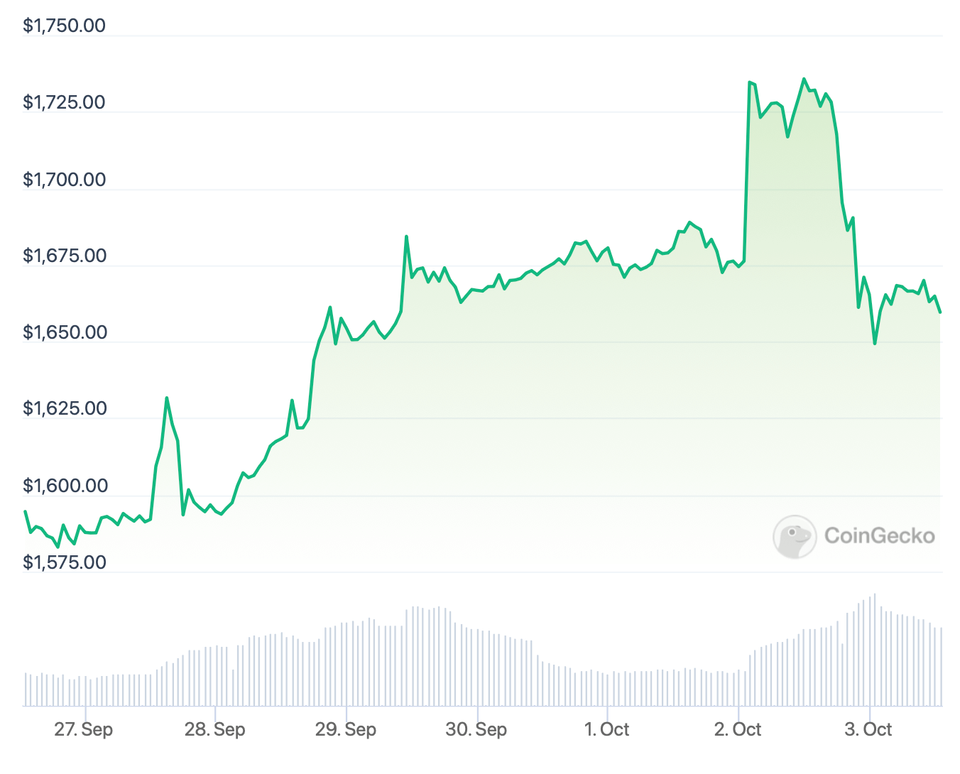 Изменение стоимости курса Эфириума за неделю