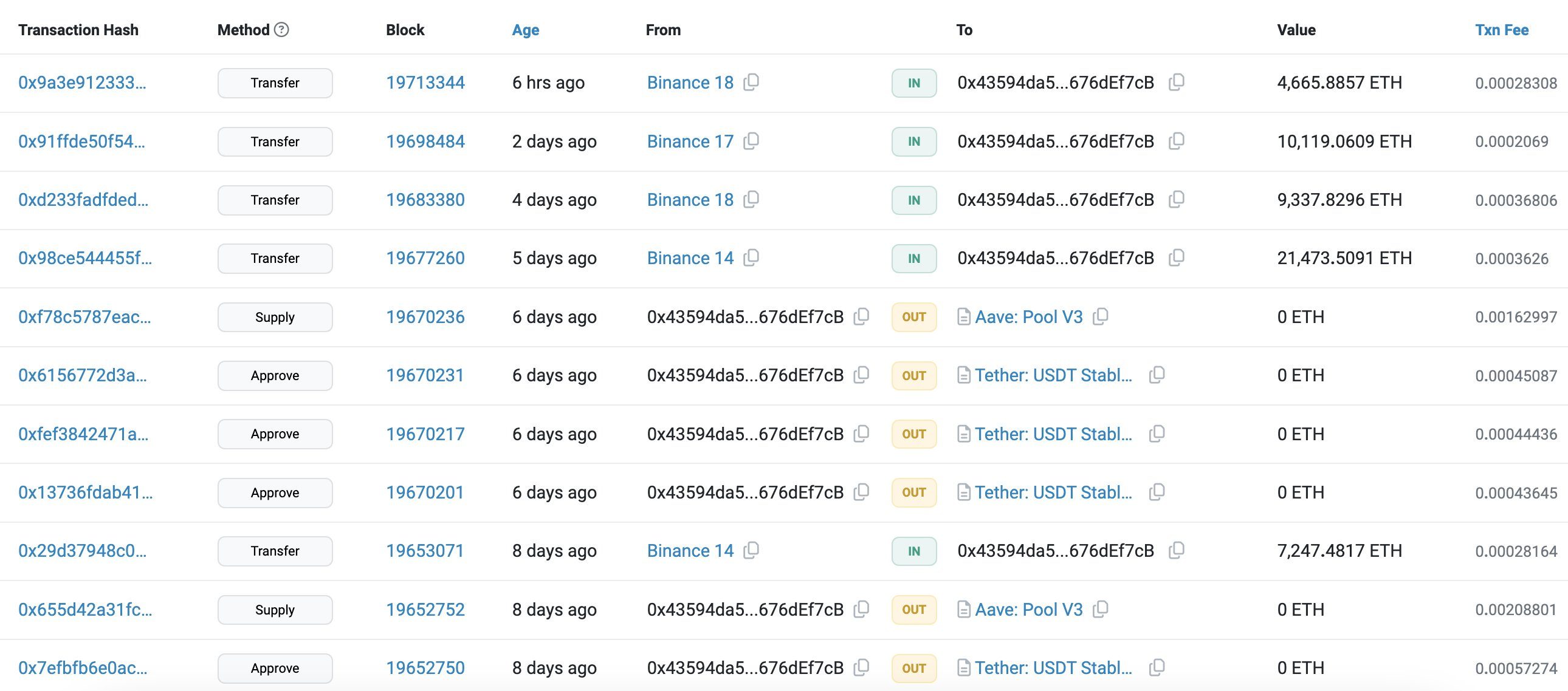 Аналитики обратили внимание на активность китов, которые запасаются ETH. Вот, например, аноним вывел 7 182 ETH ($23,06 млн) с Binance, а другой пользователь перевел с биржи 11 892 ETH на $37,77 млн. Эти и другие операции команда Lookonchain отследила через блокчейн-эксплореры.