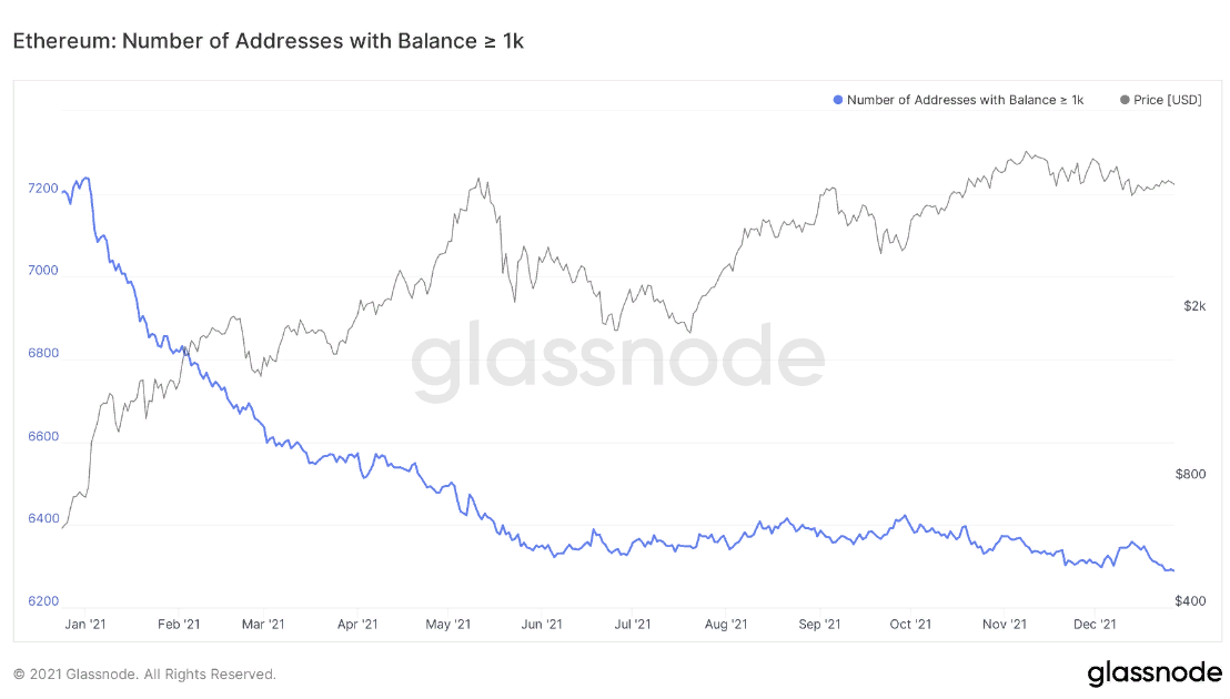 Исследователи отмечают, что в начале 2021 года количество эфириум-китов достигало 7239.
