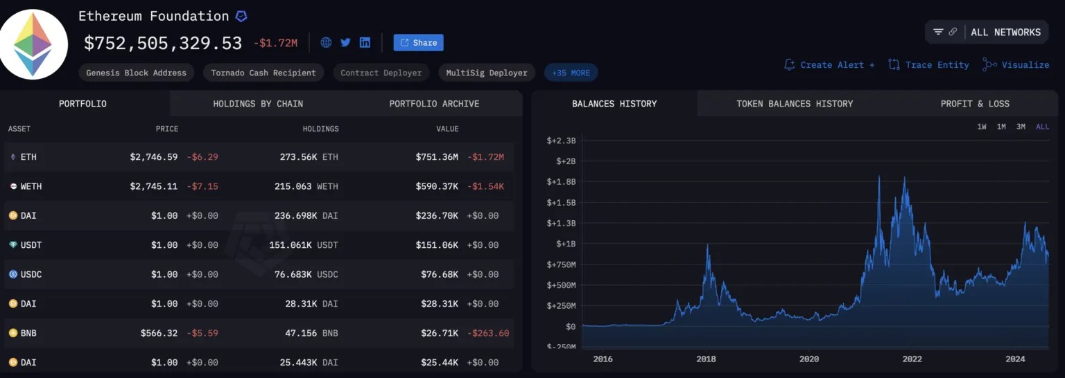 Портфель Ethereum Foundation. Источник: Arkham