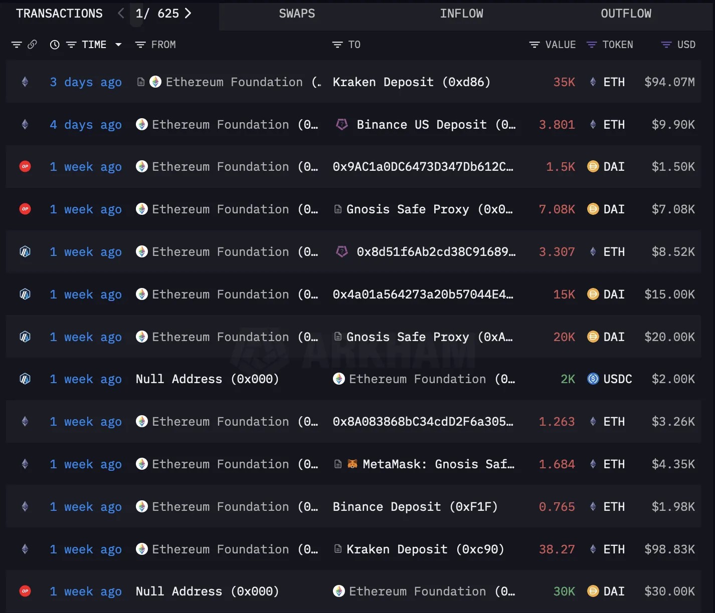 Последние транзакции Ethereum Foundation. Источник: Arkham