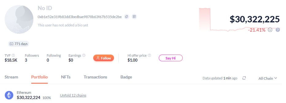 По данным сервиса DeBank, на кошельке, с которого отправлялись средства, еще хранится около 11 489 ETH на сумму более $30 млн.