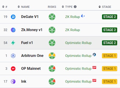 Как отметил Бутерин, на текущем этапе развития второго уровня есть три роллапа первого этапа (Optimism, Arbitrum, Ink) и три — второго (DeGate, zk.money, Fuel). При этом большая часть активности приходится на решения нулевого этапа, отметил разработчик.