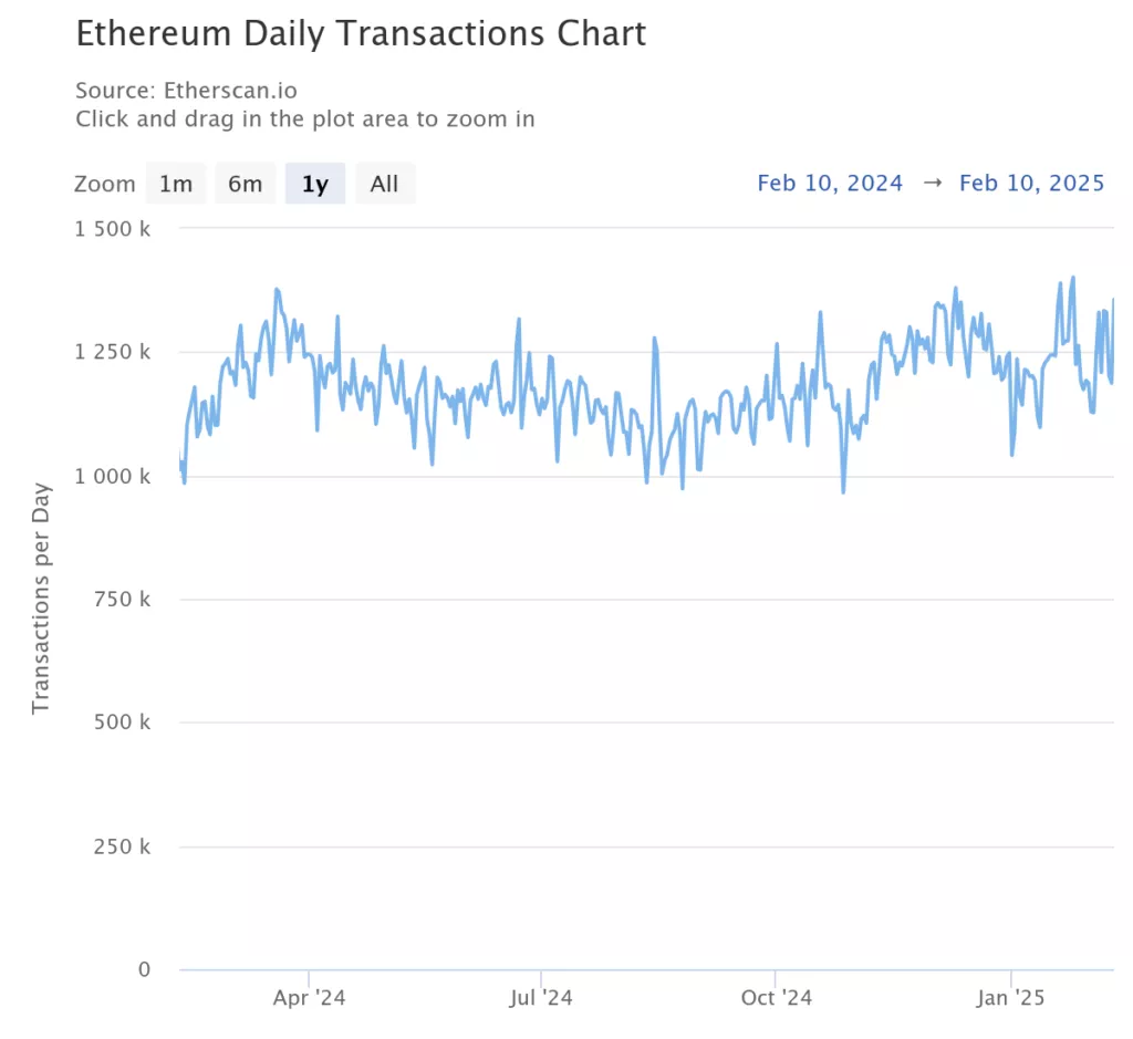 График ниже иллюстрирует стагнирующую транзакционную активность в основной сети: