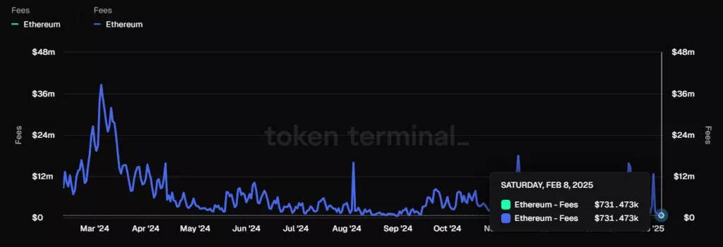 Объем транзакционных комиссий, сгенерированных за сутки в сети второй по капитализации криптовалюты, упал до отметок сентября 2024 года.