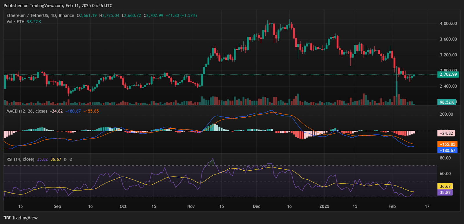 ETH находится на грани потенциального краткосрочного разворота, поскольку криптовалюта в настоящее время торгуется на уровне $2700,01, что на 2% выше за последний день.