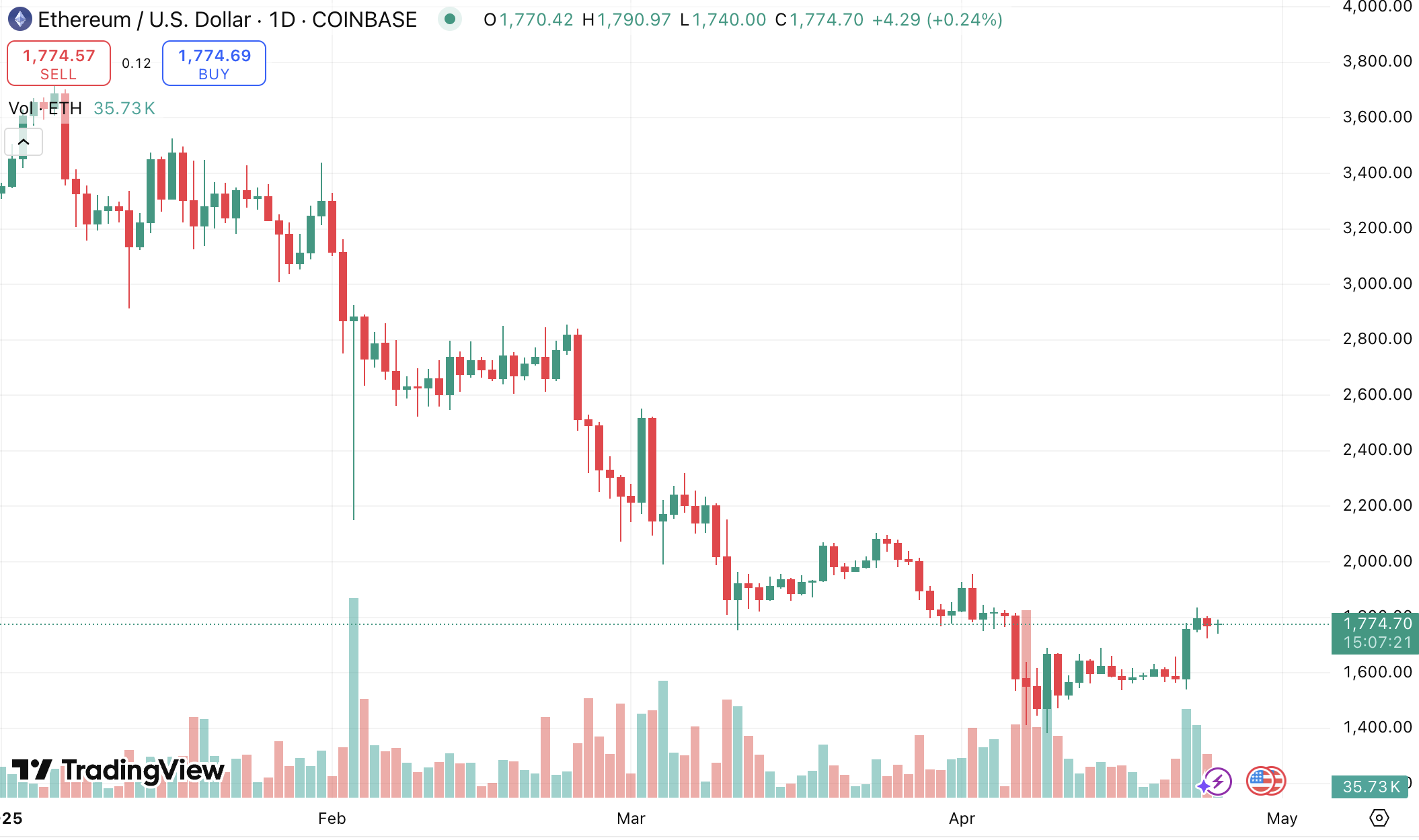 По данным TradingView, с начала 2025 года цена Ethereum снизилась более чем на 46%. Для сравнения, биткоин за это прибавил около 1%.