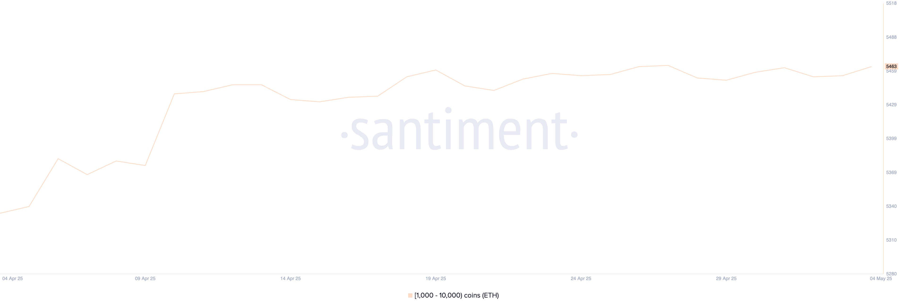 Тем временем число Ethereum-китов — адресов, держащих от 1 000 до 10 000 ETH — составляет 5 463. В последние недели это число оставалось стабильным, не показывая значительного роста.