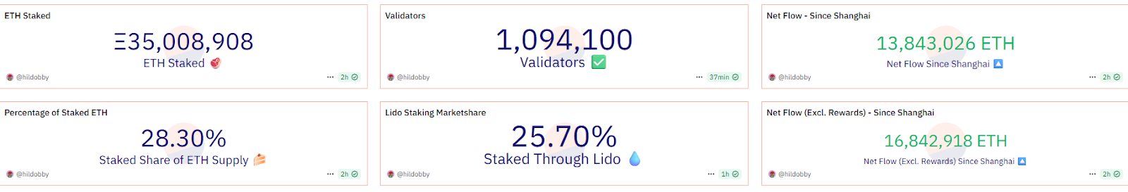 Согласно данным Dune Analytics, объем стекинга в рамках модели Proof-of-Stake на блокчейне Ethereum превысил 35 млн ETH, что стало историческим максимумом для сети.