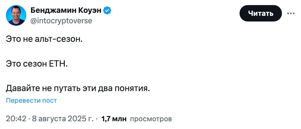 «Знаю, это звучит дико, но ETH может превысить $10000».
