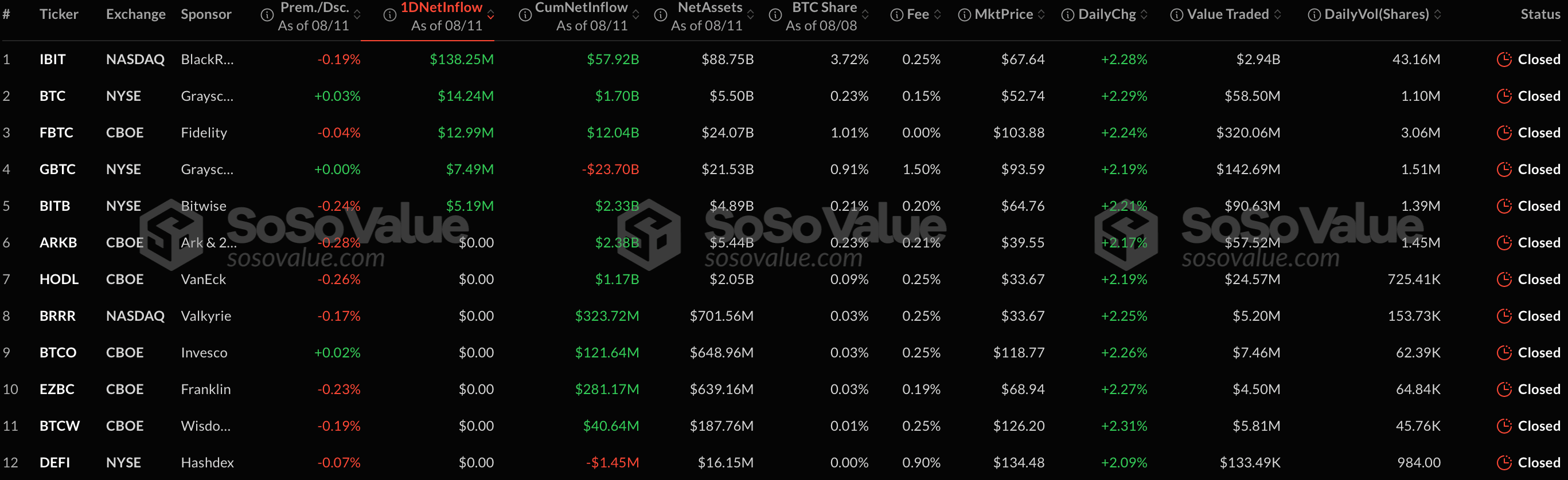 - IBIT — $138,25 млн;