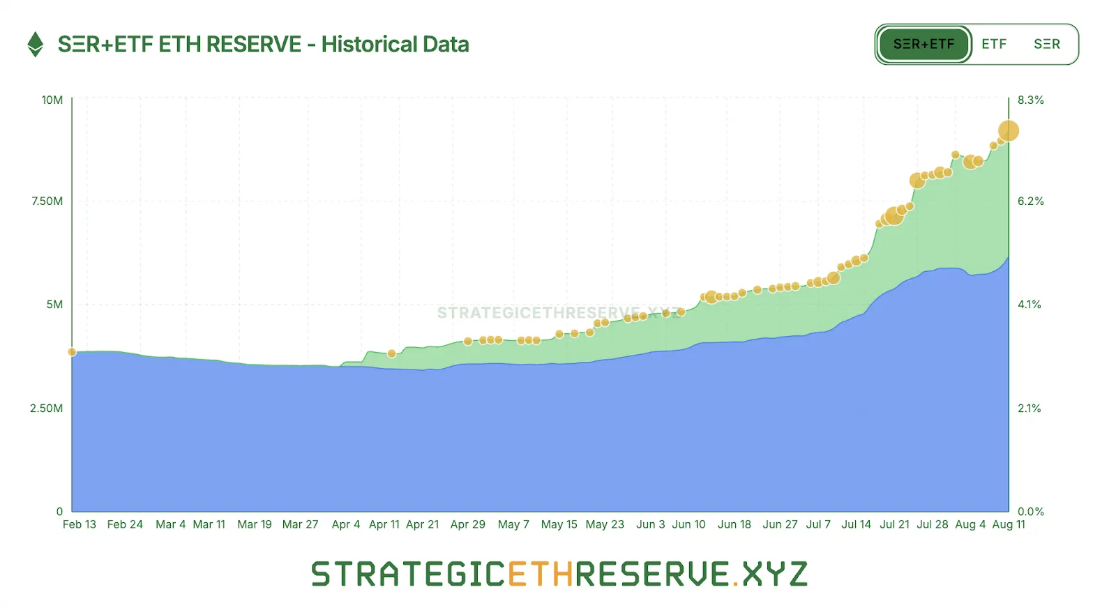 Росту Ethereum способствует спрос со стороны корпоративных казначейств. Публичные компании следуют стратегии Майкла Сэйлора, но вместо цифрового золота накапливают вторую по капитализации криптовалюту.