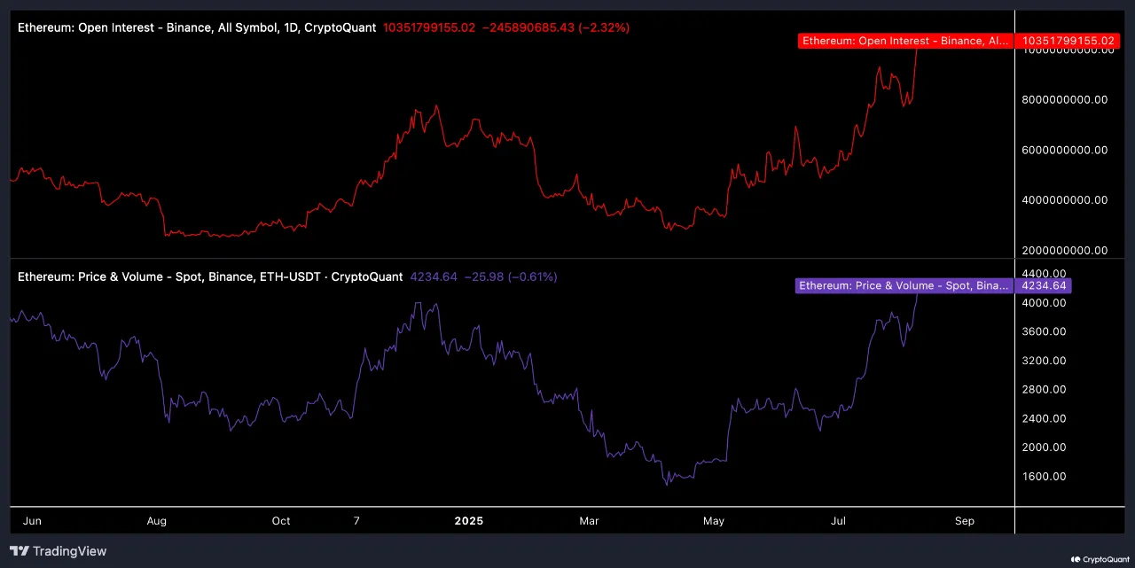 Аналитик CryptoQuant под ником oininen_t сообщил, что открытый интерес по инструментам на базе эфира на Binance достиг $10 млрд. С ноября 2024 года объем коротких позиций вырос на 500%. По его мнению, при сохранении текущего тренда это может привести к резкому росту цены.