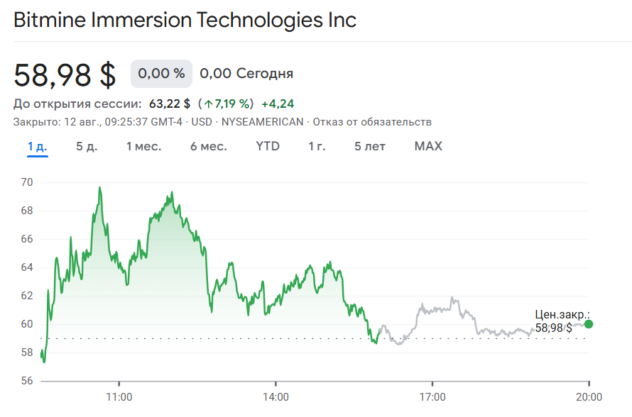 На фоне новостей акции BMNR выросли на 3,8% на премаркете. Днем ранее они прибавили 14,7%.