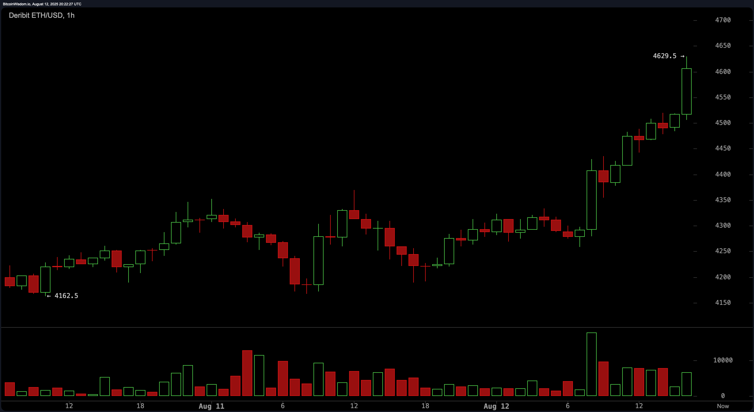 Во вторник цена Ethereum (ETH) превысила отметку в 4600 долларов, достигнув внутридневного максимума в 4629 долларов за токен на Deribit. За последние 24 часа эфир вырос на 8% по отношению к доллару США, а за неделю — почти на 28%.