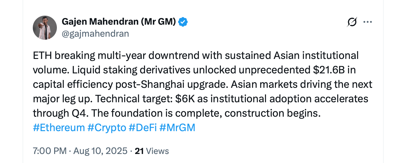 Ethereum достиг отметки в 4600 долларов, а быки нацелились на 6000 долларов