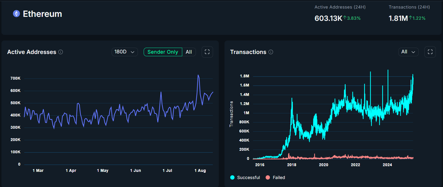 Среднесуточное количество транзакций в сети Ethereum удерживается вблизи исторического максимума, превысив 1,8 млн.