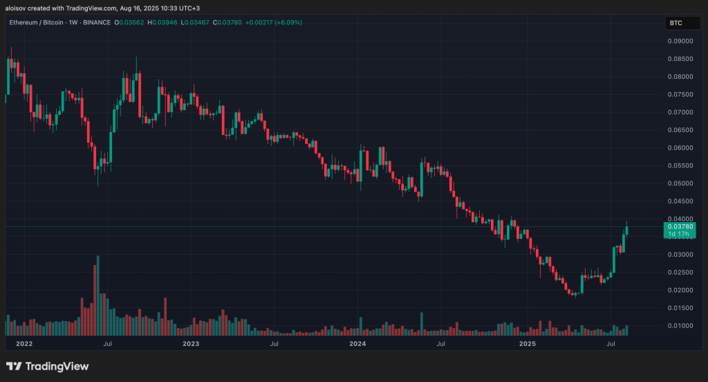 Соотношение ETH/BTC показывает силу Ethereum