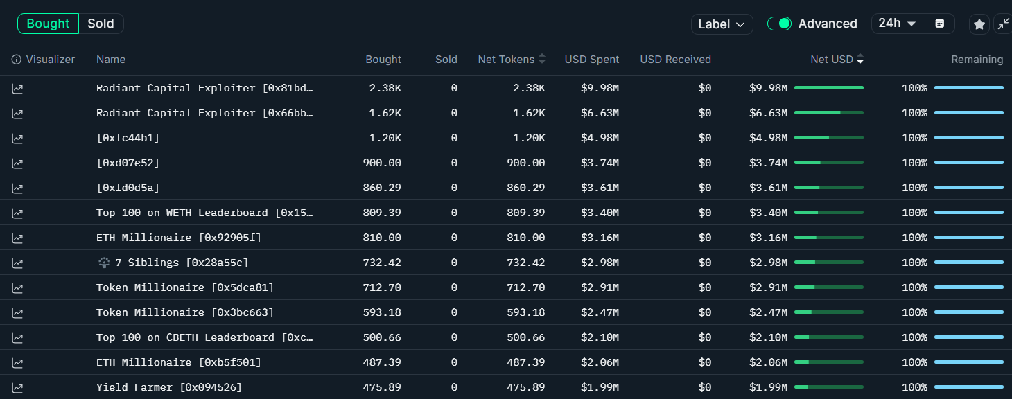 Рыночный спад даже вдохновил печально известный криптокошелек Radiant Capital на приобретение Ethereum. Сумма покупки составила $16,6 млн.